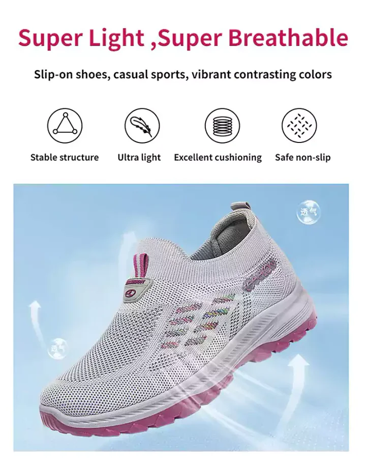 Ezek a női Bunion Corrector Plantar Fasciitis Arch Support cipők sztreccs kötött felsőrésszel készülnek, amely a lábhoz illeszkedik ebben a sportos slip-on gallérral és jól párnázott talppal, amely egész napos kényelmet biztosít.