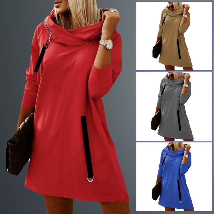 2023-as új divatos lezser női hosszú ujjú cipzáros ruha kapucnival