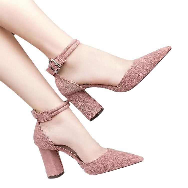 2025-ös új női vastag sarkú és sekély hegyes orrú szandál