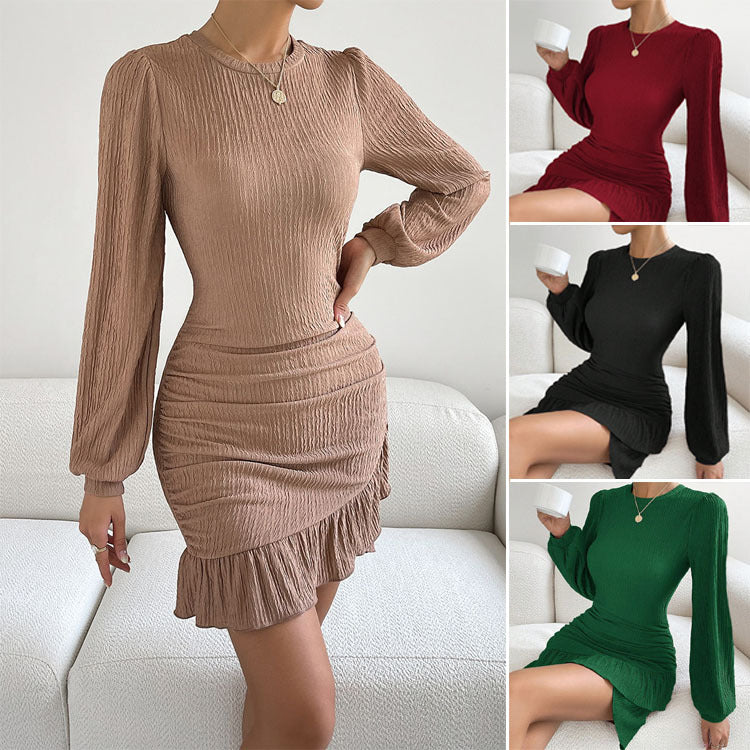Divatos őszi-téli ruha hosszú ujjal, kötöttáruból