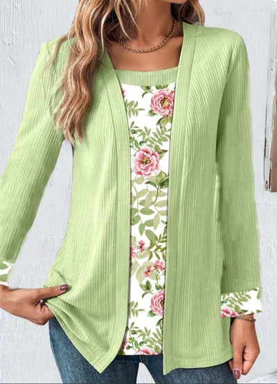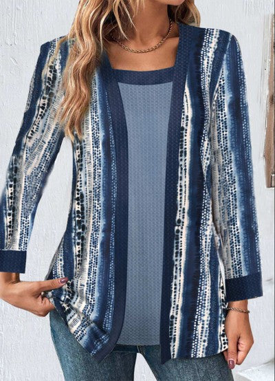 Hamis kétrészes nyomtatott hosszú ujjú póló