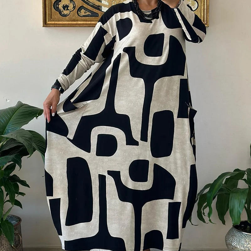 KÉNYELMES FIZETŐ: A laza nyakú és tágas szabású ruha elegánsan illeszkedik a különböző testtípusokhoz, így a kényelem oázisát nyújtja a stílus feláldozása nélkül.