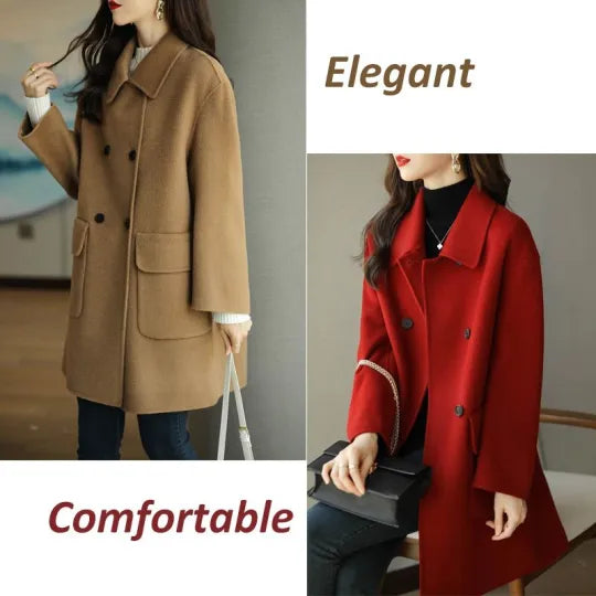 A közepes hosszúságú gyapjú kabát klasszikus kétsoros kabáttal rendelkezik, elegánsabb és kényelmesebb.