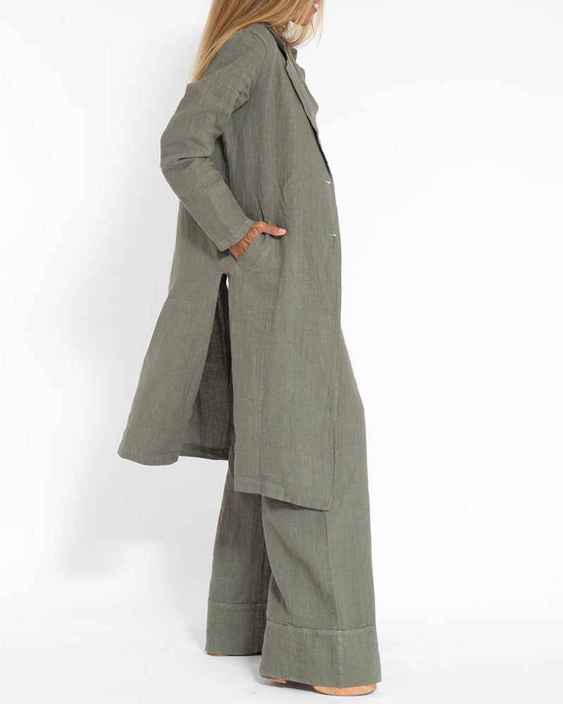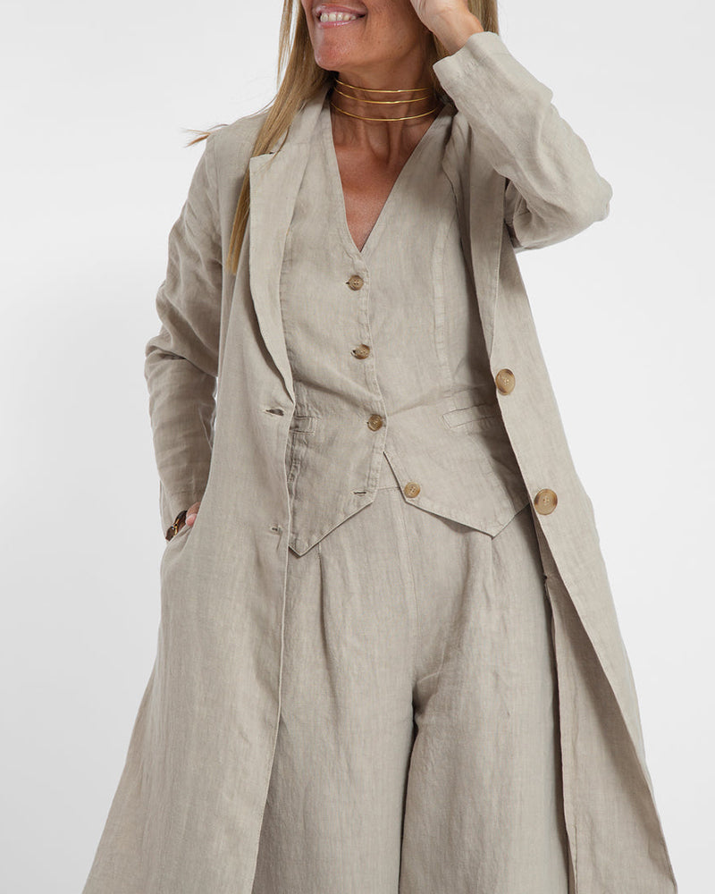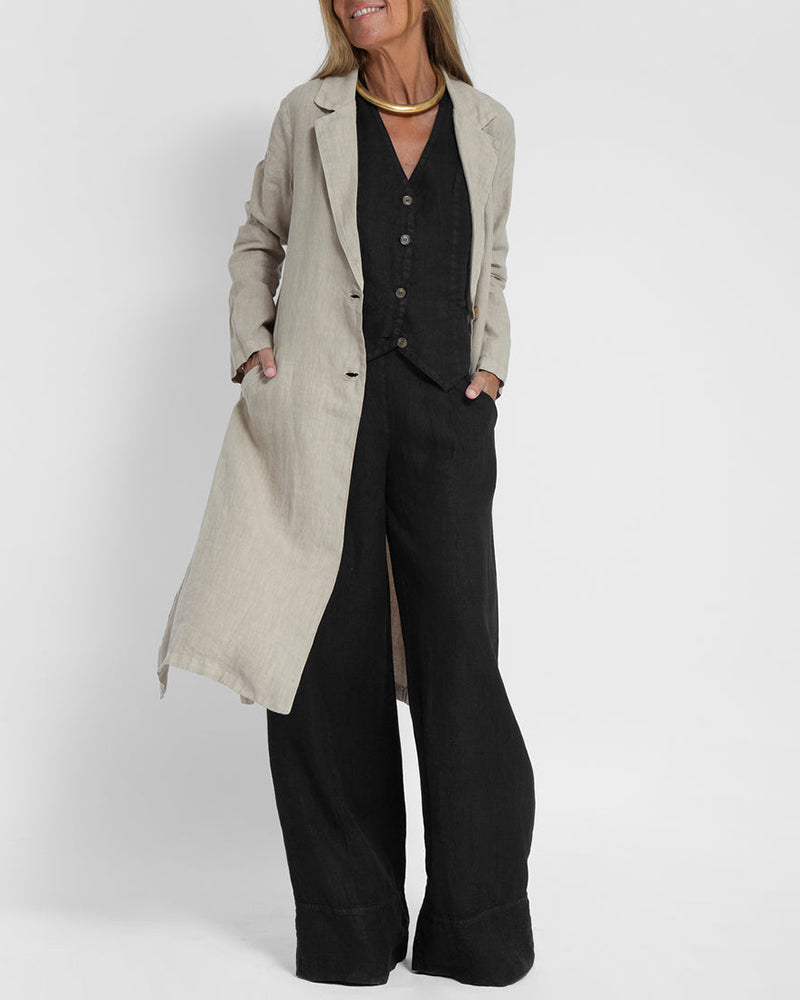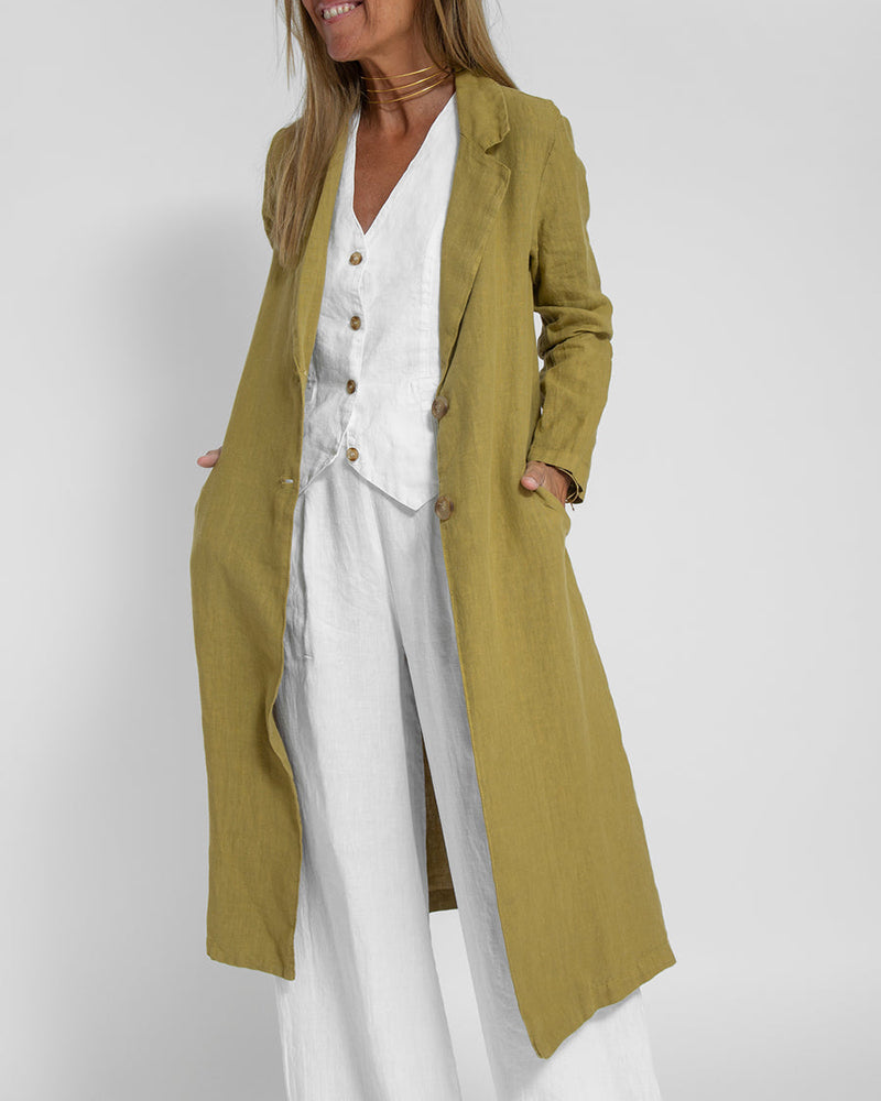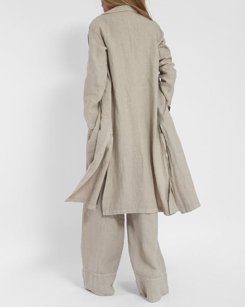 Alkalmi karcsúsított, hosszú gallérú kabát füles zsebekkel