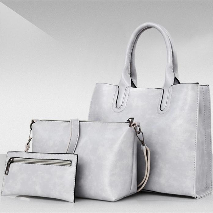 Új, háromrészes női divatos kézitáska retro stílusú viaszos bőrből, nagy kapacitással 2