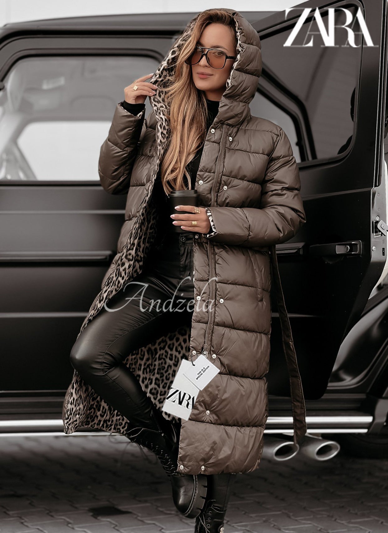 Divatos és meleg, kétoldalas hosszú kabát leopárdmintával