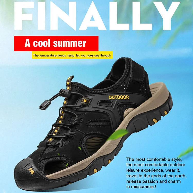 Férfi zárt orrú sportszandálok sporttúra szandálok szabadtéri túracipők bőr strand horgászszandálok