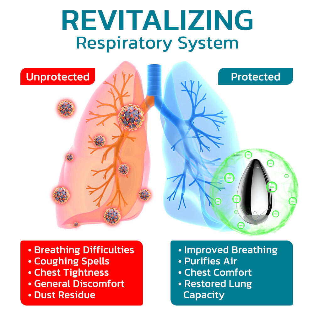 A légzőrendszerbe való gyors felszívódásra tervezték, ez a termék viseléskor hatékonyan beépül a kényes tüdőszövetekbe. Vonzza és eltávolítja a levegőből a részecskéket, például a port és a pollent, ezáltal csökkenti azok lebegő koncentrációját és javítja a levegő általános minőségét.
