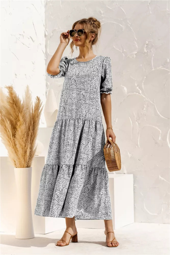 Kockás, felfújt ujjú, lépcsőzetes ruha
