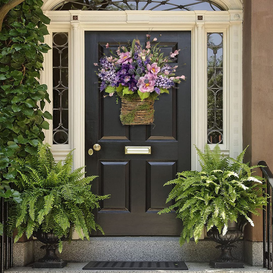 💐 Gyönyörűen díszített, szőlőből készült kosárkoszorú. A kosarat a lila és a lila virágok legszebb keveréke díszíti. Ez a koszorú tökéletes módja annak, hogy üdvözöljük a családot és a barátokat.🤣 Irigykedni fognak a szomszédok és bárki, aki arra jár. 💖Ez a koszorú nem csak az otthonodban mutatna remekül, de egy különleges anyák napi ajándék is lehet anyukádnak. 💐Díszítsen egy olyan fényűző füzért, hogy meglepjen és megdicsérjen minden barátot és szomszédot, aki a házába érkezik.