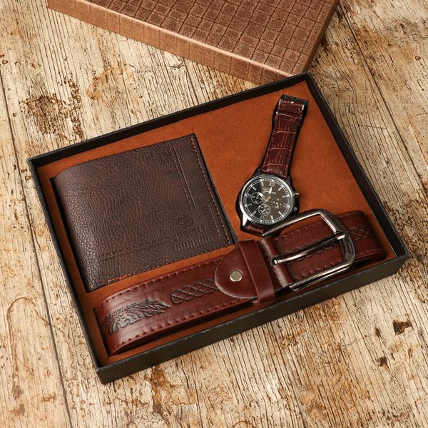 ⌚ Luxuskészlet egy modern férfinak! Egy minőségi óra, egy szíj és egy pénztárca elegáns megjelenést és stílusos stílust kölcsönöz neked. Anyaga: eco bőr, rozsdamentes acél