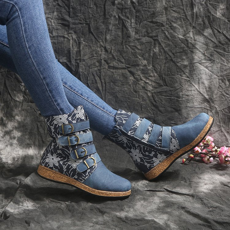 Női vintage mintás meleg vízálló bőrcsizma