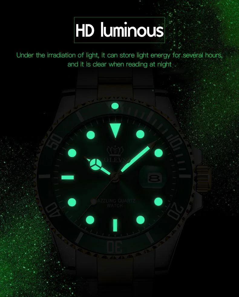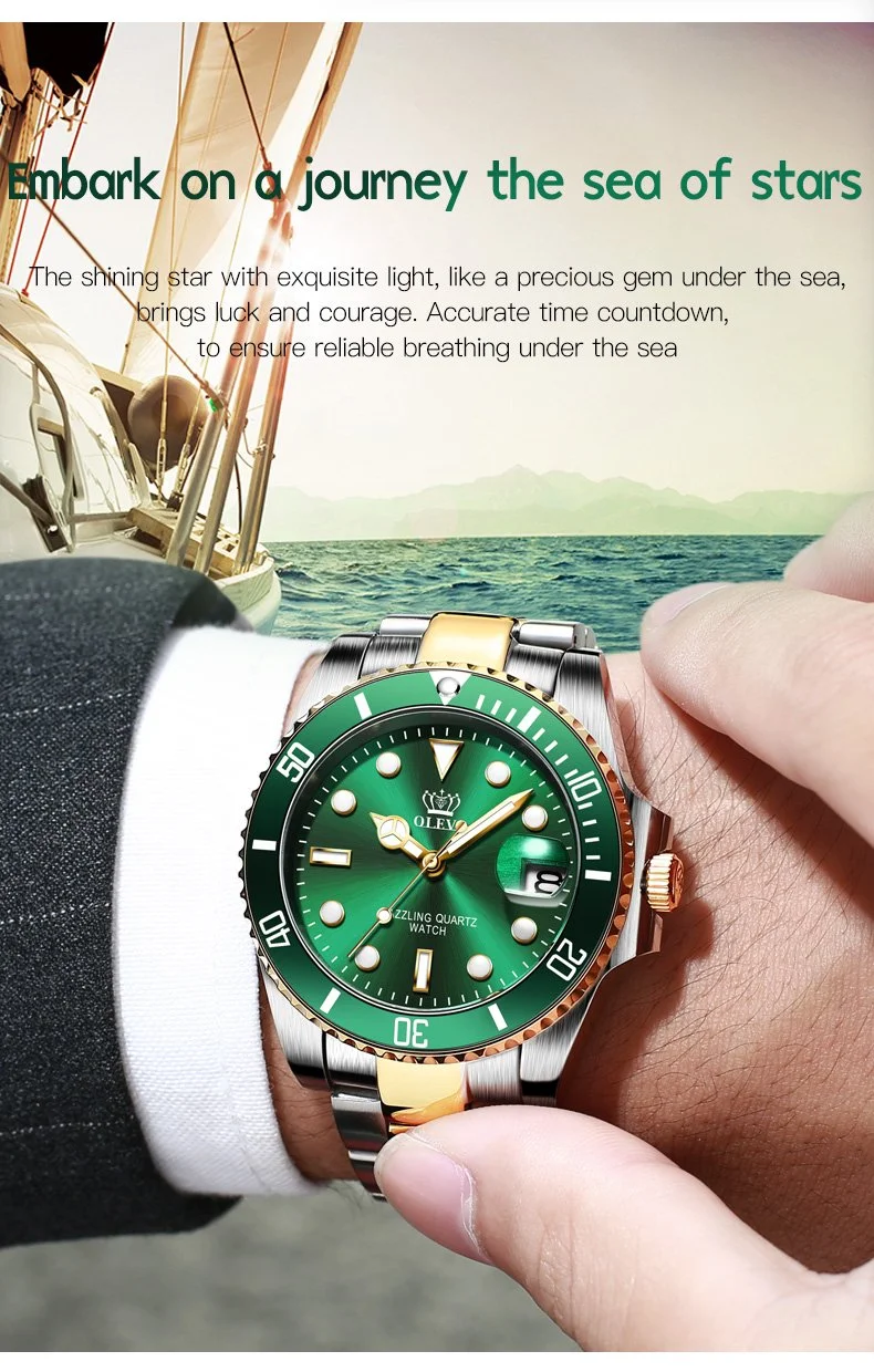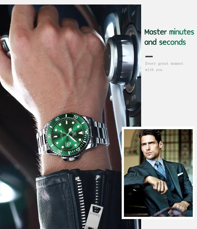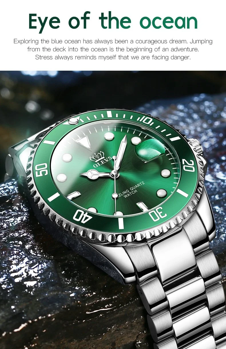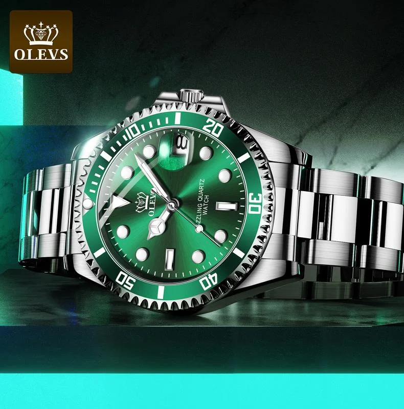 OLEVS GREEN WATER GHOST QUARTZ WATCH VÍZÁLLÓ LUXUS FÉRFI ÓRA