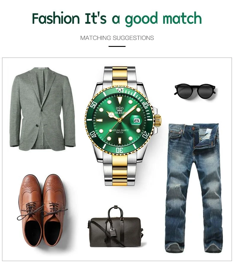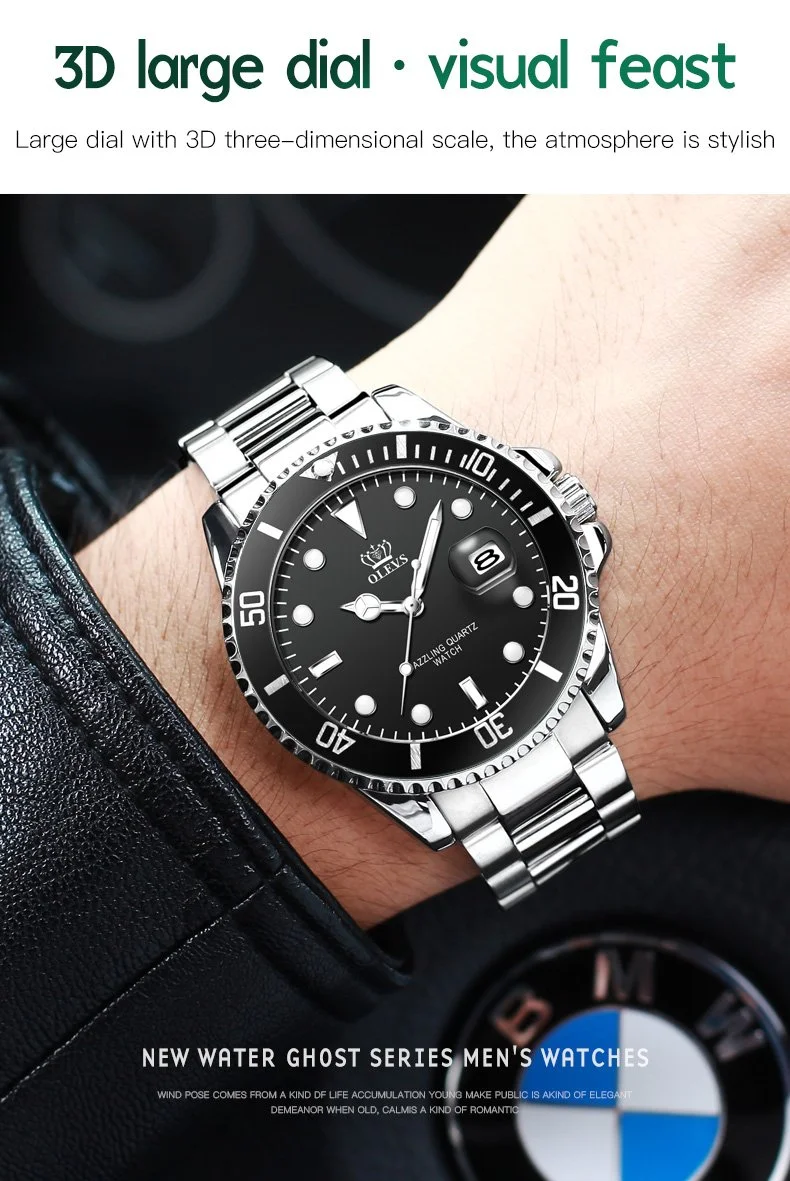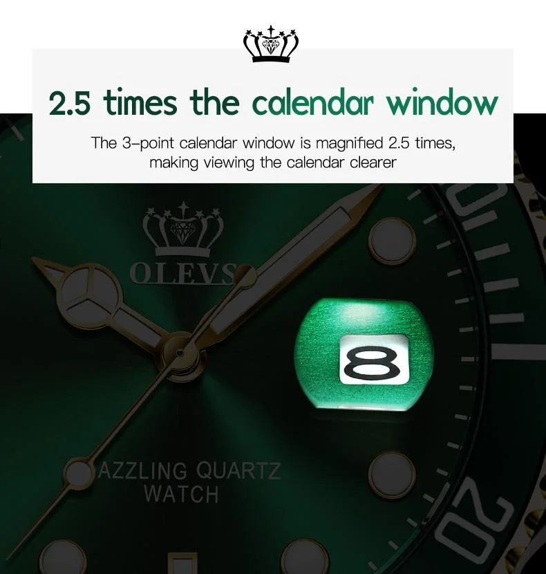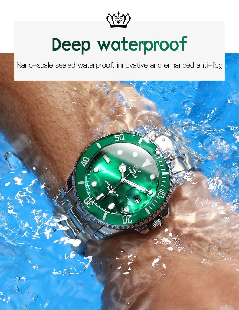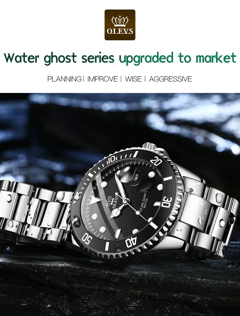 OLEVS GREEN WATER GHOST QUARTZ WATCH VÍZÁLLÓ LUXUS FÉRFI ÓRA