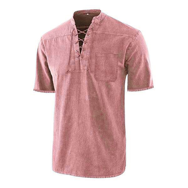 Férfi gótikus retro póló Csipkés V-nyakú vászon póló rövid ujjú póló Bő felsők