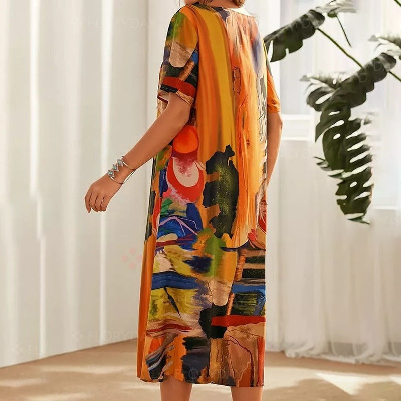 【S-5XL】 Nyári új, kerek nyakú bő ruha
