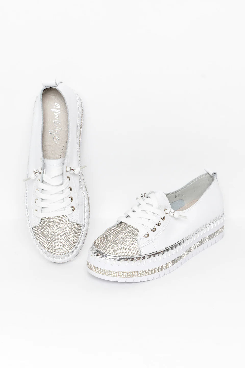 Kristályezüst bőr tornacipők - 50% kedvezmény korlátozott ideig