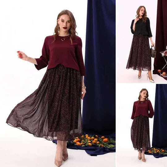 LAPOS NYAK ÉS UJJAK – A nyakkivágás és az ujjak kialakítása fontos szerepet játszik a ruha általános eleganciájában. A magas nyakkivágás kiemelheti viselője arcvonásait, és romantikus hatást varázsolhat a megjelenésbe. Hasonlóképpen, a széles ujjú és széles szoknya sokféle környezetet és stílust teremthet, lehetővé téve az alkalomnak megfelelő testreszabást.