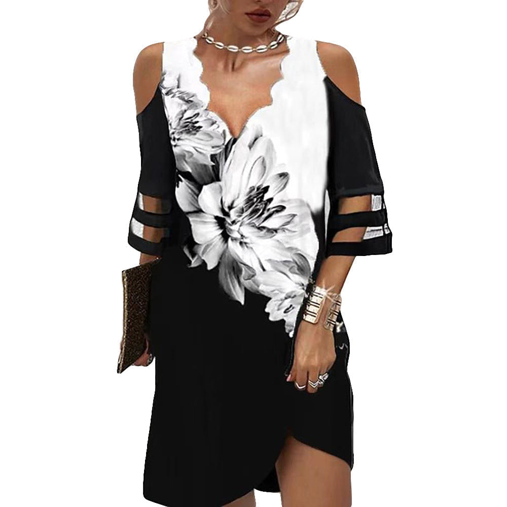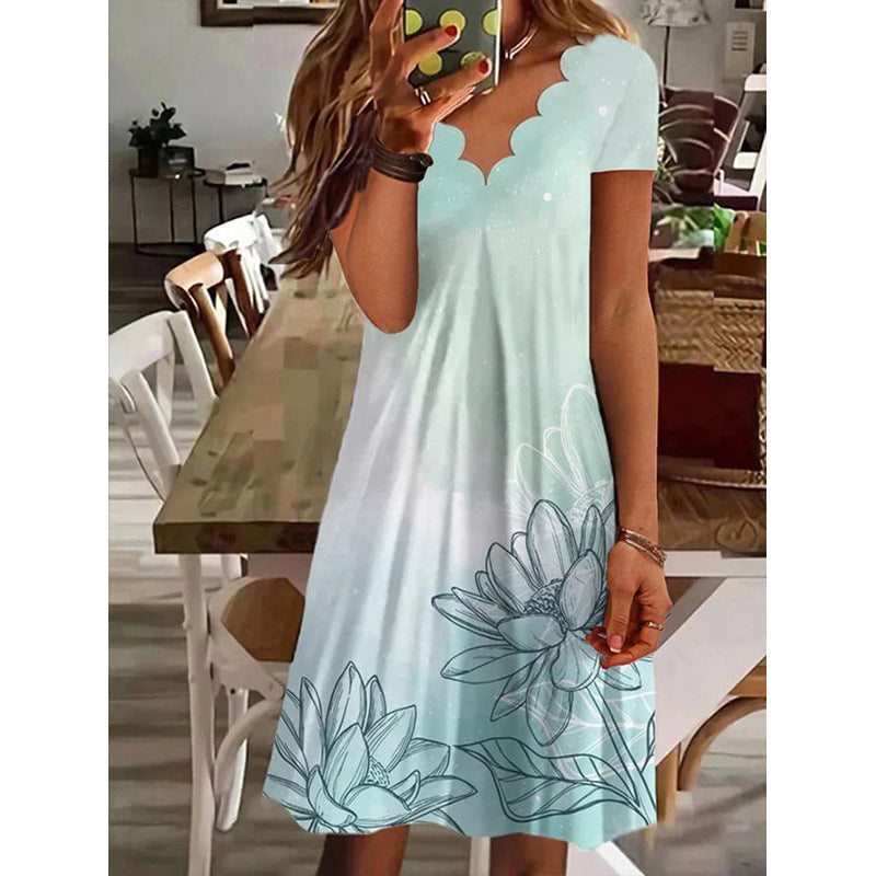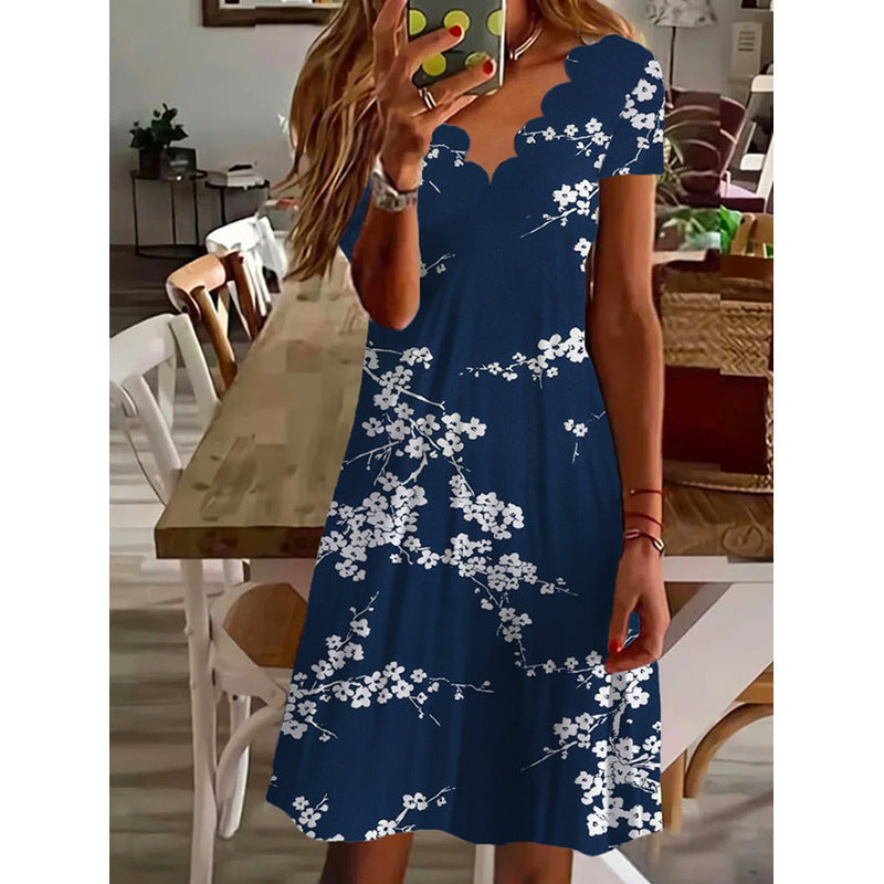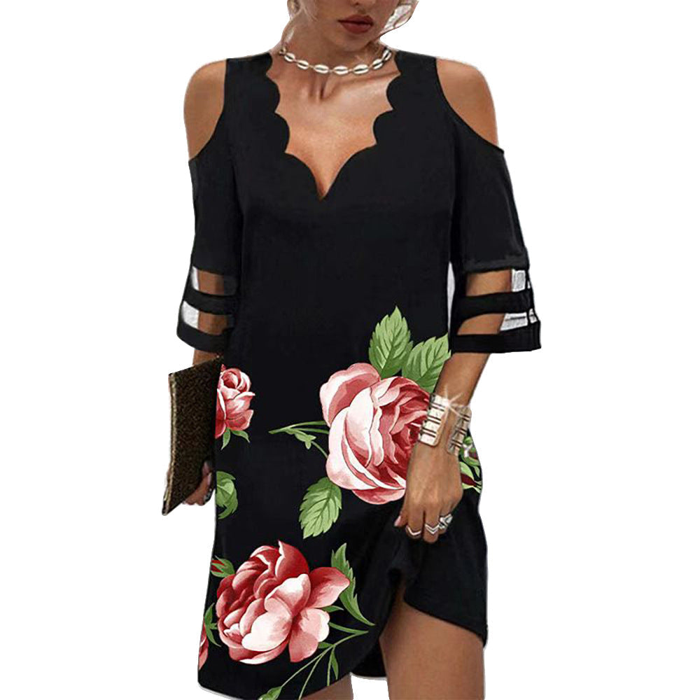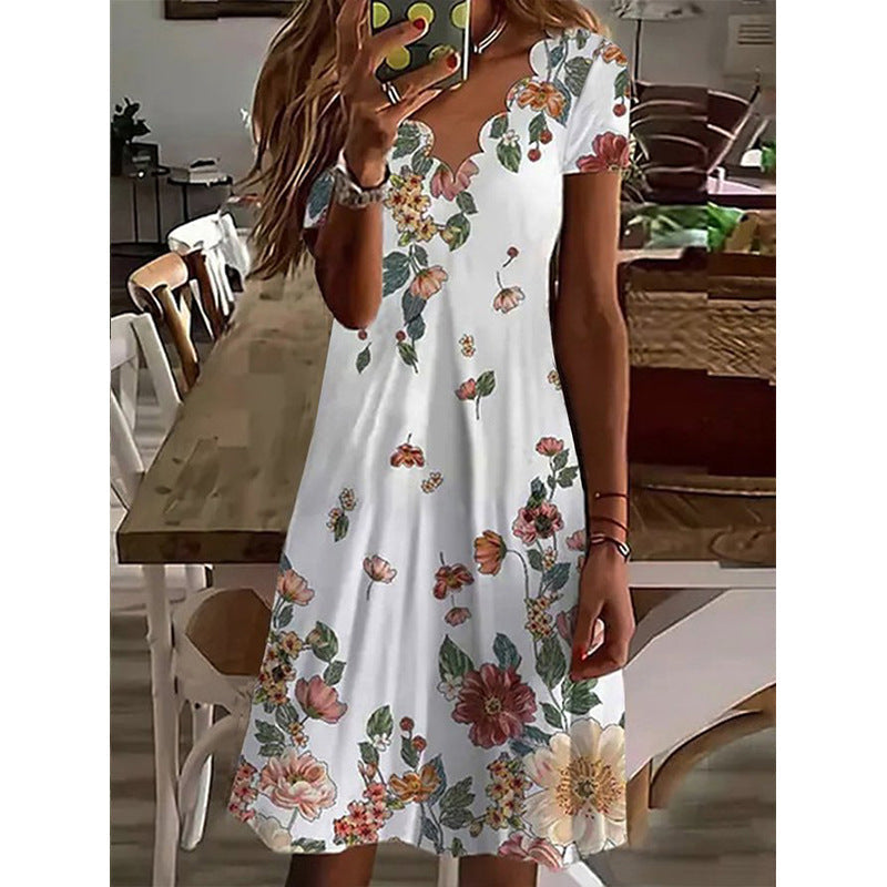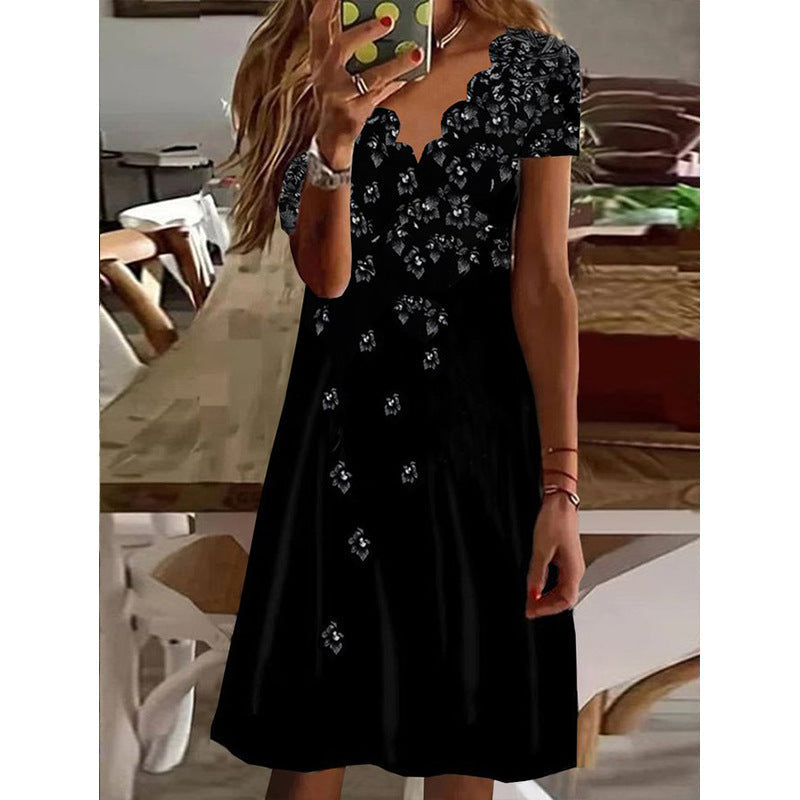 Recézett nyakú virágos ünnepi midi ruha