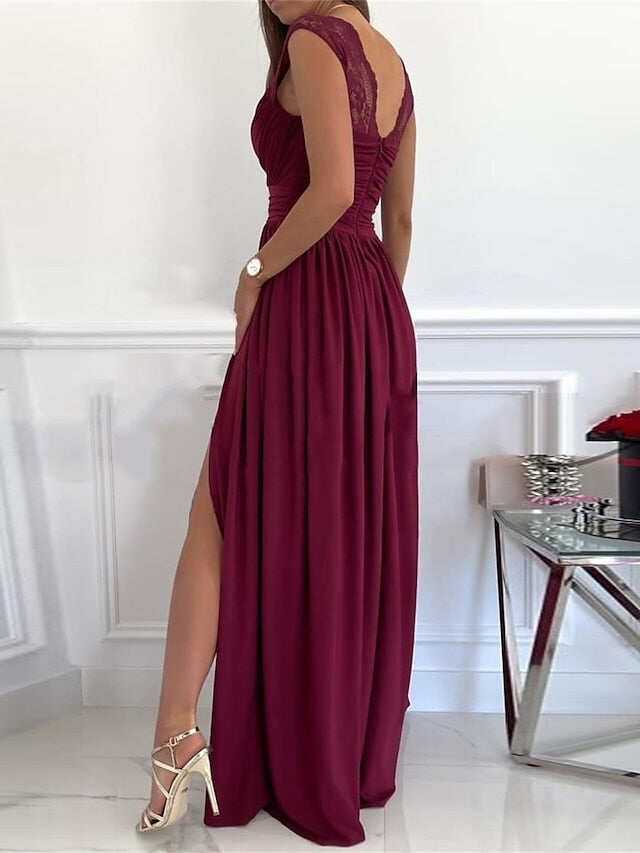 Nem: Nők , Stílus: Buli , Divat , Kifinomultság , Elegáns ruha , Fesztiválruha , Alkalom: Esküvői Vendég , Strand , Különleges alkalom , Születésnap , Kirándulás , Karácsony , Nyaralás , Este , Nyaralás , Ruha típusa: Swing ruha , Parti ruhák fekete ruha , piros ruha , rózsaszín ruha , báli ruha , esküvői vendég ruha , estélyi ruha , nyakkivágás: V-nyakú , szövet: poliészter , minta: csipke , hasíték , redők , rugalmasság: mikro sztreccs , minta: egyszínű , évszak: ősz , ősz , tél , tavasz , szabás típusa: normál szabás , ruha hossz típusa: maxi ruha, maxi ruha ,