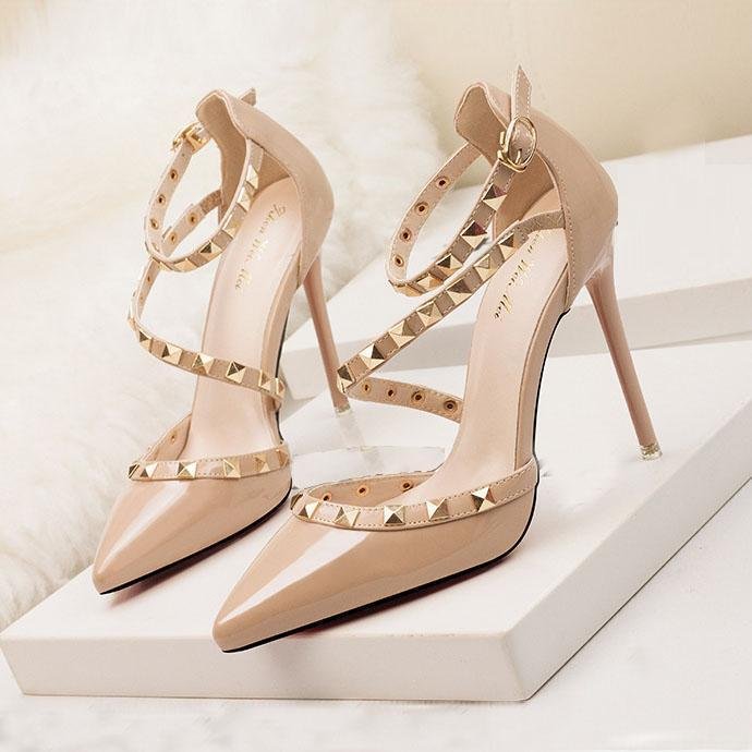 Női hegyes orrú szandál tűsarkúval és szegecses menyasszonyi cipővel bulikra💞