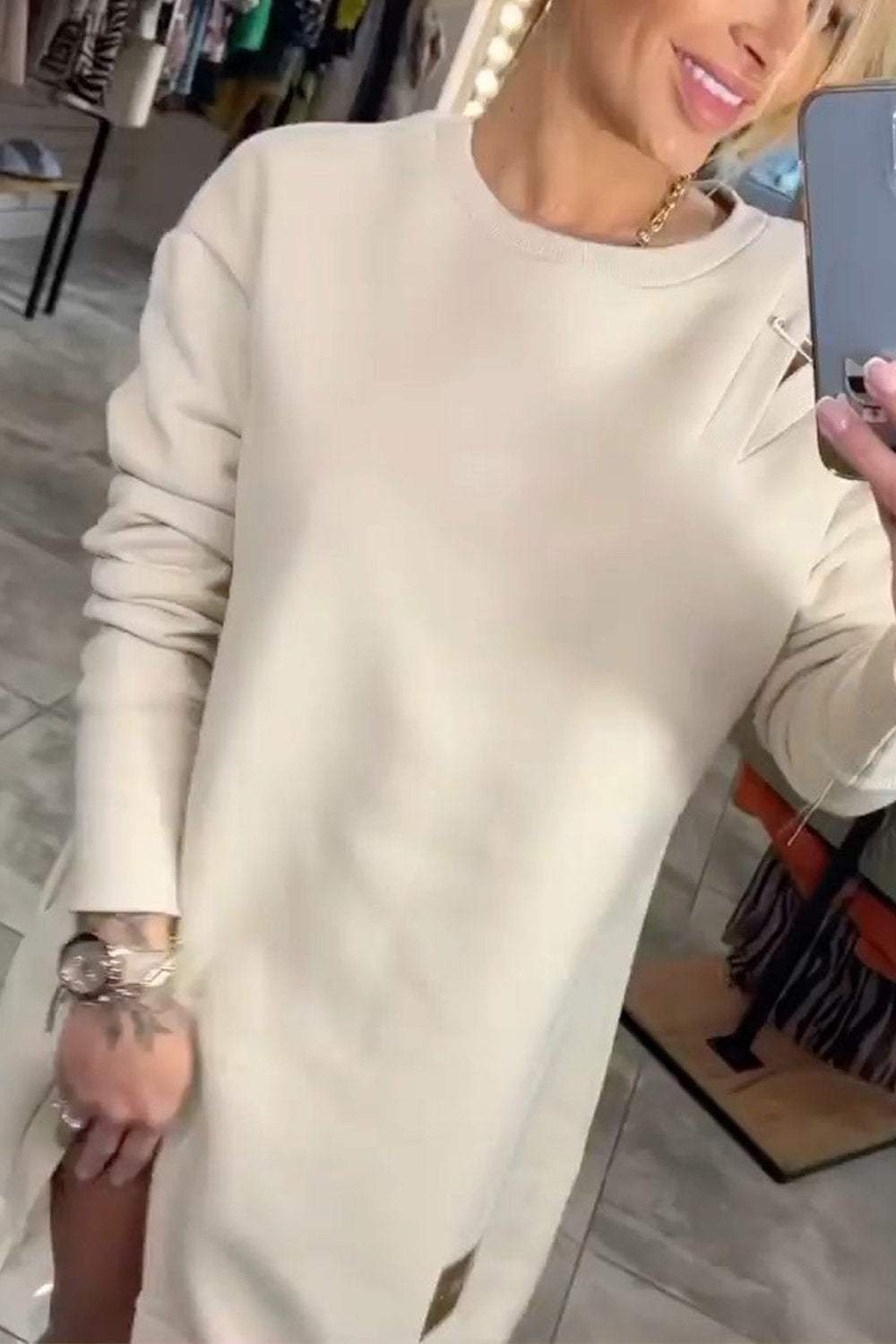 Női váll nélkül kötött pulóver ruha