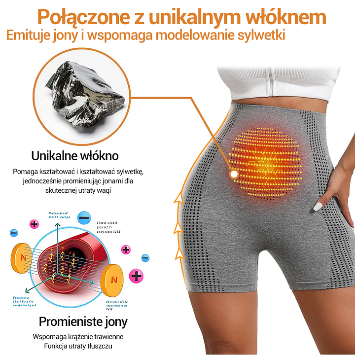 Nasze szorty modelujące z włókna jonowego Ice-Silk z mikro-wibracyjnymi modułami masującymi zostały zaprojektowane, aby wspierać Twoją utrata wagi, nawet jeśli prowadzisz siedzący tryb życia lub masz trudności z utrzymaniem zbilansowanej diety. Dzięki 80% terapii podczerwienią te szorty pomagają osiągnąć wymarzoną wagę. Działają poprzez przyspieszenie metabolizmu, detoksykację organizmu, redukcję cellulitu oraz leczenie obrzęków. Dodatkowo, szorty przyczyniają się do szybkiego modelowania sylwetki, ujędrniają talię i brzuch, a także poprawiają krągłość bioder.